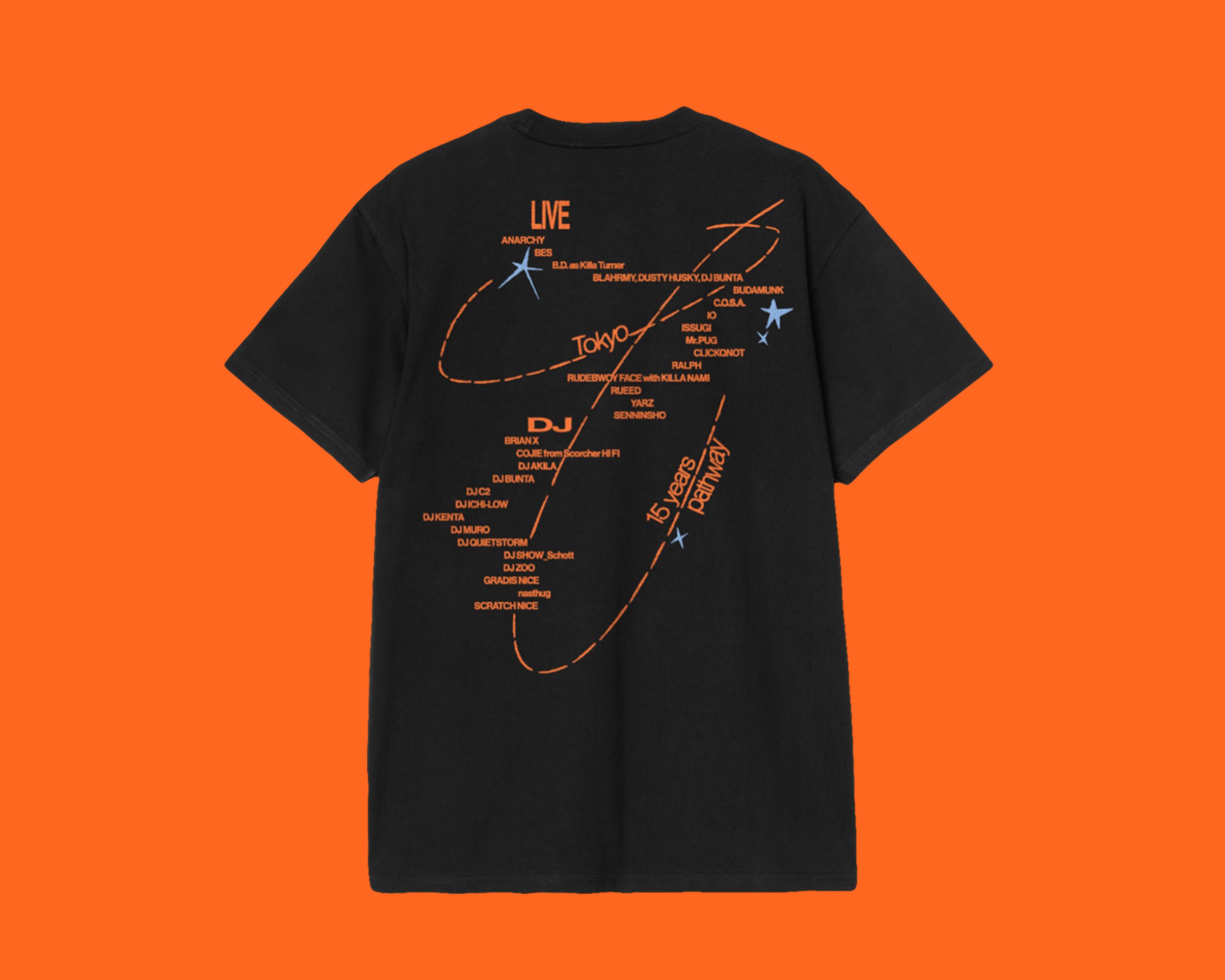 Graphic for “SOAR”, a concert celebrating 15 years of Carhartt WIP Japan. Featured on T-shirts, a crewneck, and posters, and more.