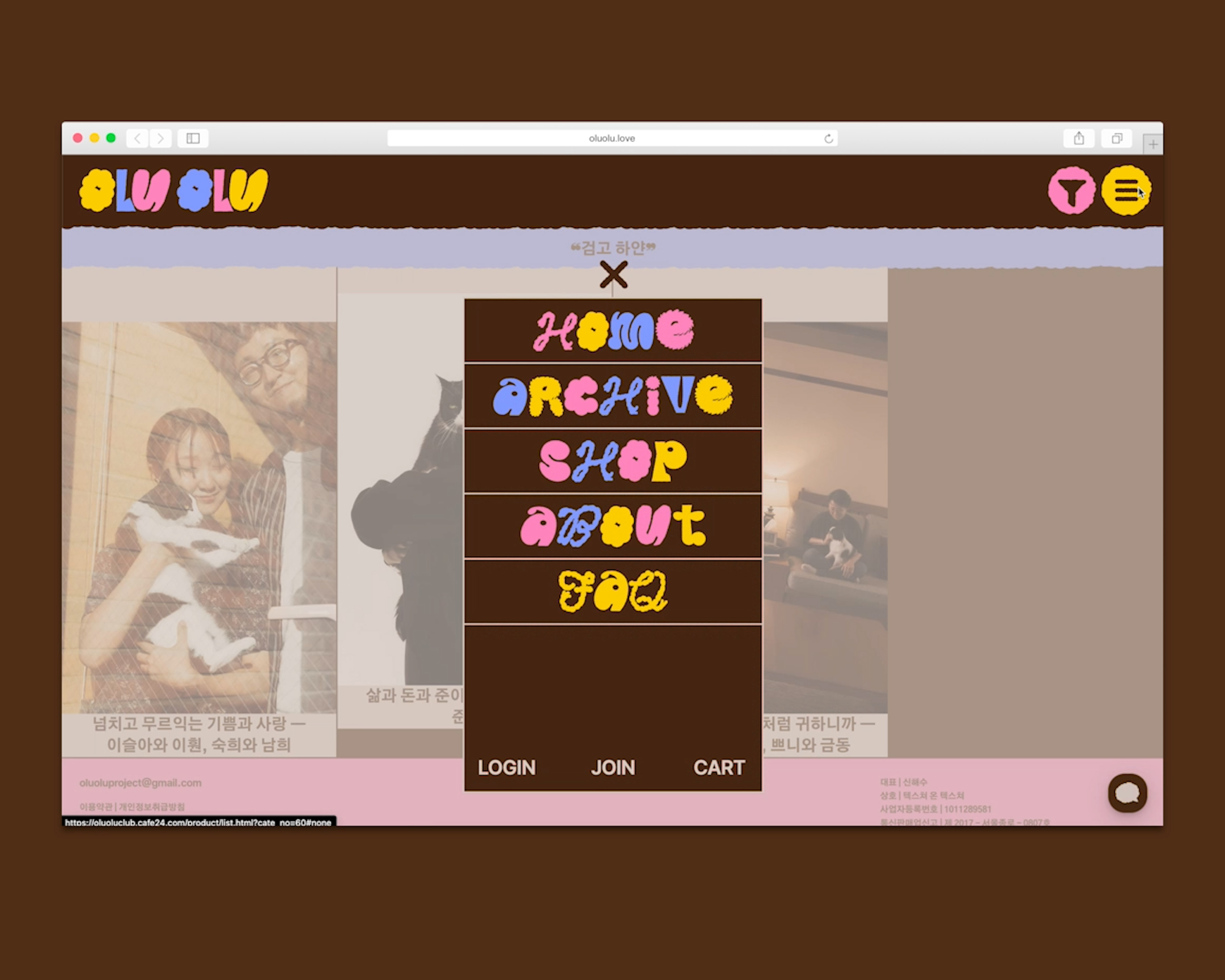 We developed OLU OLU's brand identity, merchandise, and website. OLU OLU is an archiving project that documents non-human animals, their companions, guardians, activists, and supporters through photography and conversation.