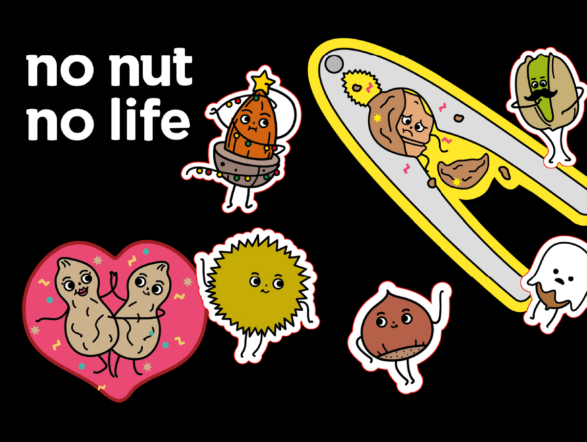 Nutties is a family of nuts. The name "nutties" came from the combination of nut and besties. Each member of the family represents a type of nut, has its own name and also a special characteristic. This was a team project with a colleague (Yebinna Kim). I designed the concept and created the project myself. The logo and some characters (almond, peanut, walnut and acorn) were designed by me.